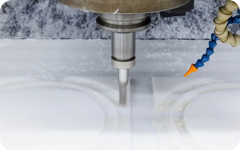 樹脂丸材・板材をNC旋盤、NCマシニングにて加工します。樹脂部品の強みは、金属部品に比べて、加工性が高く、軽量化、コストダウン、省エネ化等が見込めることです。当社では、真空成型や3Dプリンターにはない、削り出しならではの精度の高さに自信を持っています。
